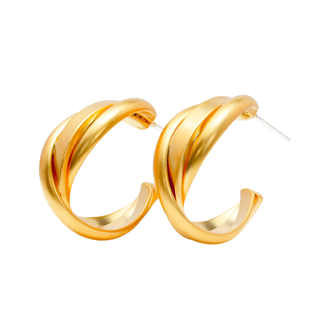 Matte Gold Spiral Stud Earrings – Möbius-Inspired 14K Gold Plated Earrings with 925 Silver Posts, Minimalist Modern Jewelry for Women