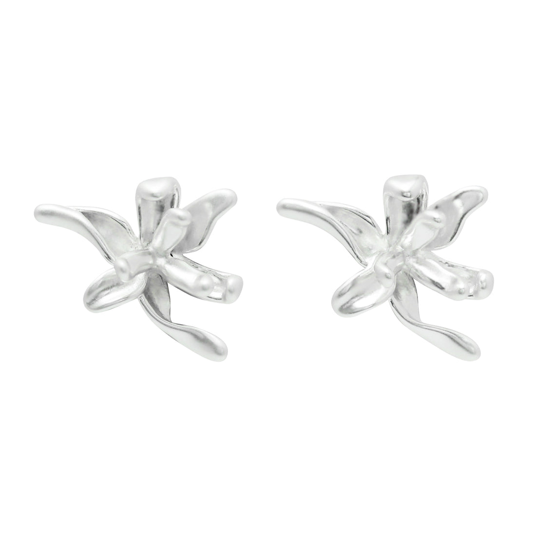 Matte Silver Iris Flower Earrings – Elegant Floral Studs for Women, Perfect for Everyday & Special Occasions