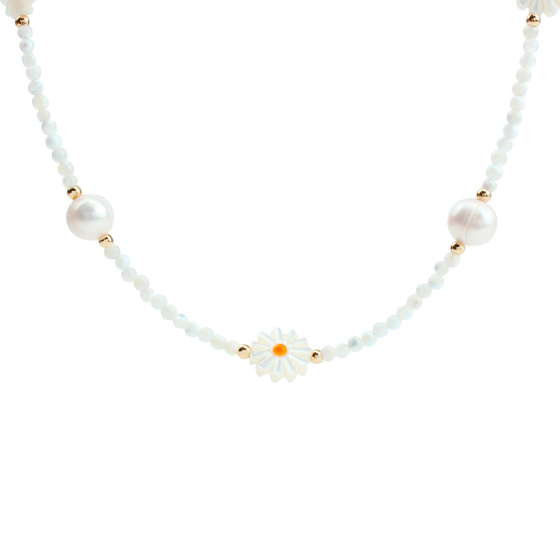 Daisy & Freshwater Pearl Necklace β 14K Gold-Plated Shell Pendant for Women πΌβ¨