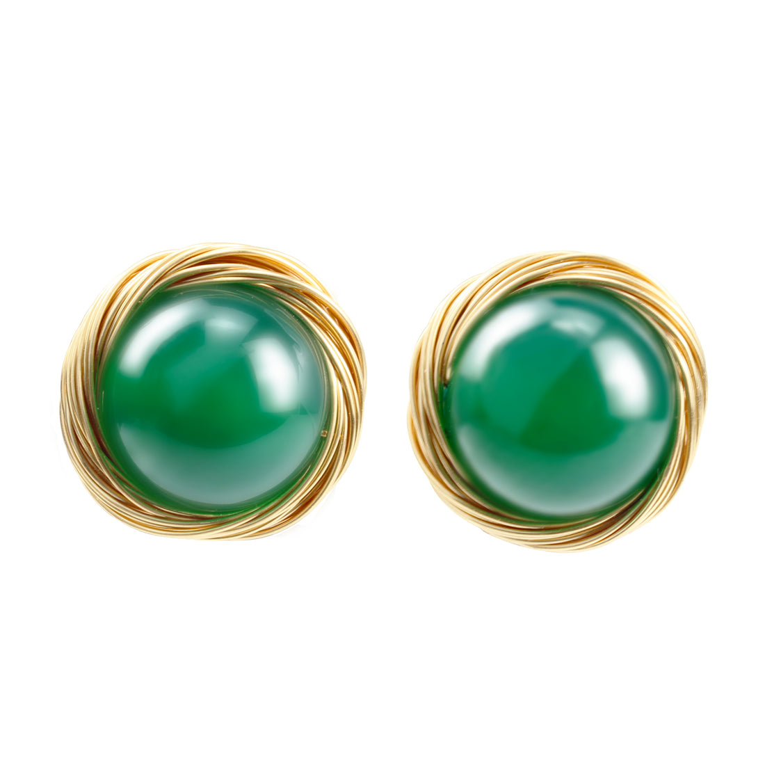Elegant Green Agate Stud Earrings β Handmade 14K Gold-Plated Jewelry with Silver Posts π