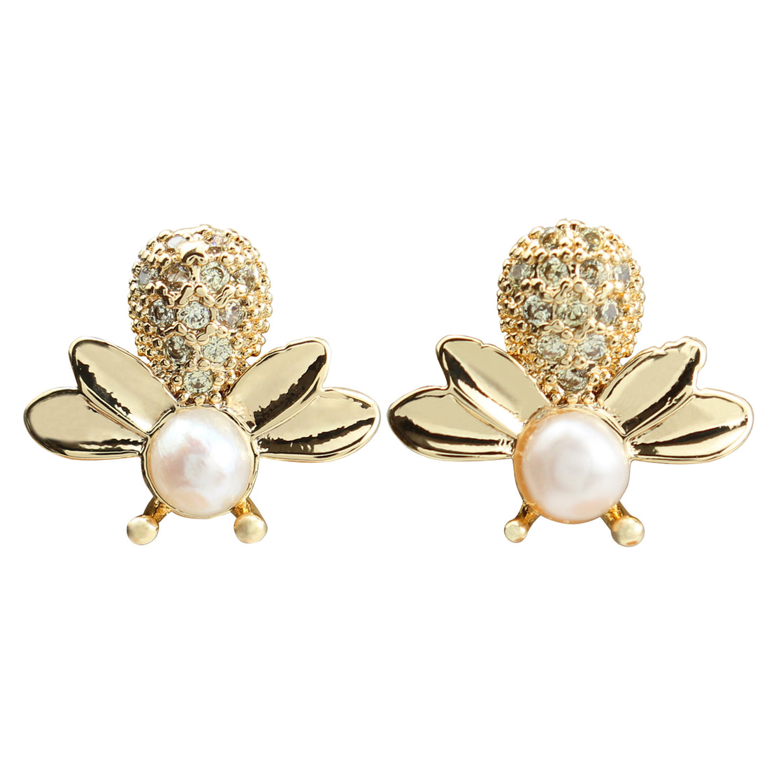 Cute Firefly Pearl Stud Earrings with Zirconia β 14K Gold-Plated Womenβs Jewelry for Party, Everyday & Date Nights β¨π