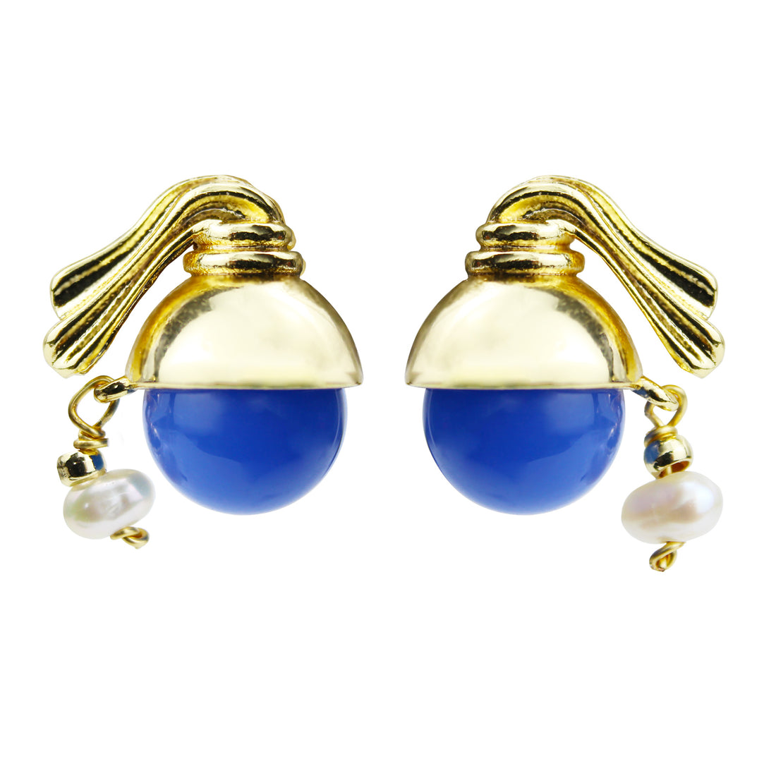 Deep Blue Pearl Stud Earrings for Women with K-Gold Coating and 925 Silver Pin β Elegant Earrings with Agate and Freshwater Pearls for Office, Party, and Everyday Wear