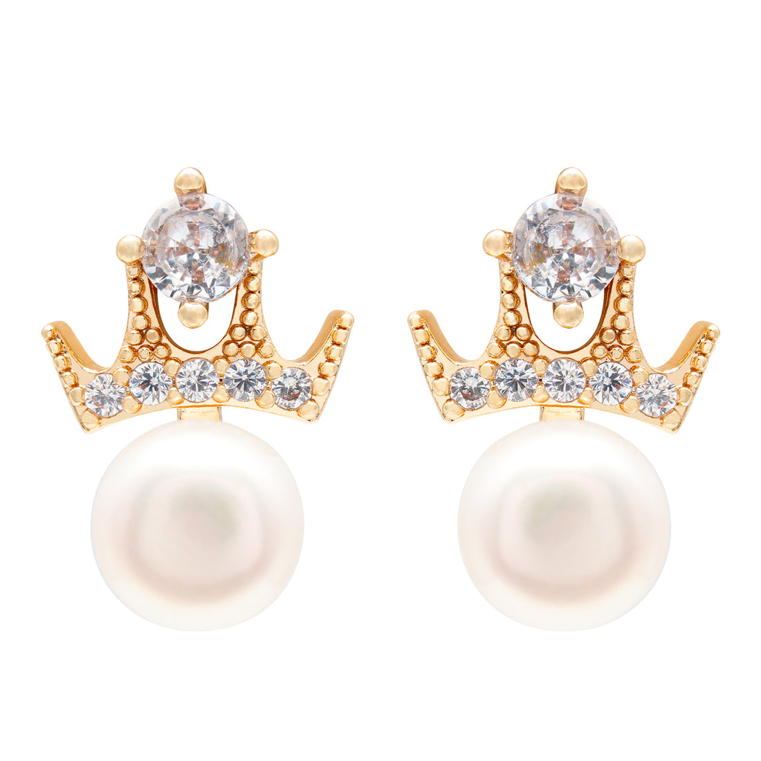 Crown Pearl Stud Earrings β 14K Gold Plated with 925 Silver Posts π