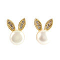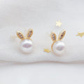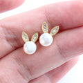 14K Gold-Plated Bunny Pearl Earrings with Zirconia – 925 Silver Studs, Hypoallergenic, Gift-Ready