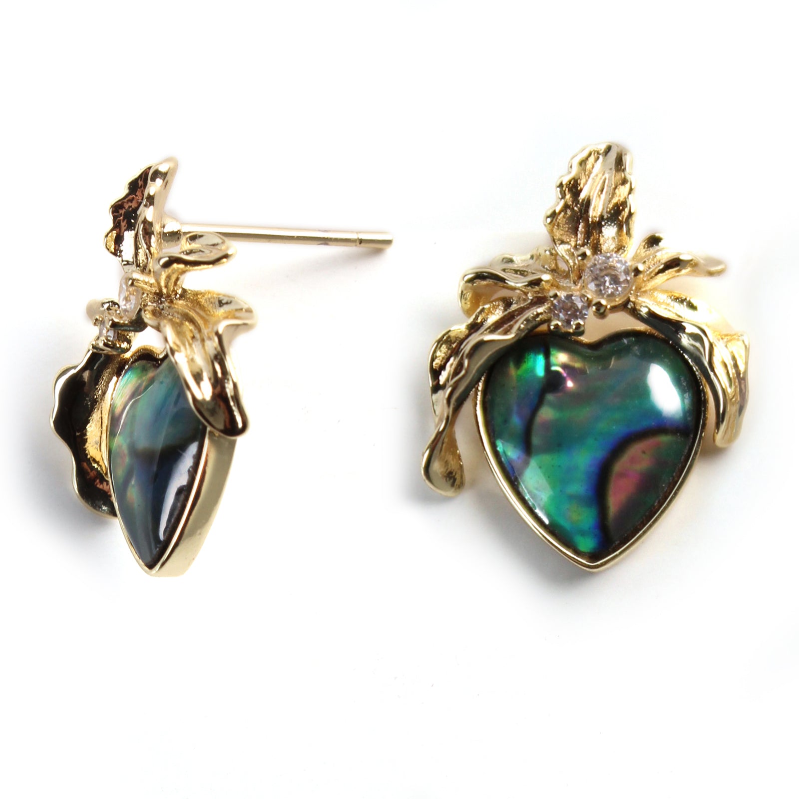 14K Gold-Plated Green Abalone Heart Earrings with 925 Silver Posts – Elegant Jewelry for Young Women, Ideal for Parties, Balls, Birthdays and Gift Giving