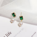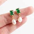 14K Gold-Plated Green Agate and Freshwater Pearl Earrings with 925 Silver Posts – Elegant Gift Jewelry for Young Women