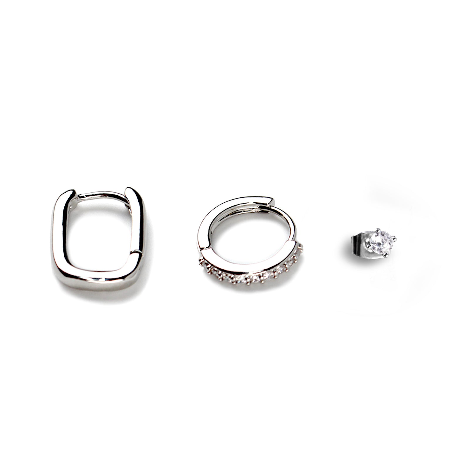 Elevate your ear styling game with this 3-piece single earring set in a chic silver tone, designed with 925 silver posts for comfortable everyday wear. Perfect for young women who love to mix and match, this set allows you to create multiple looks—from subtle elegance to statement party style. Whether you're getting ready for a private ball, a birthday celebration or a night out with friends, these earrings add a refined touch of sparkle to your outfit. Delivered in an elegant gift box, this set also makes a thoughtful present for someone special, combining modern design with a touch of effortless luxury. ✨