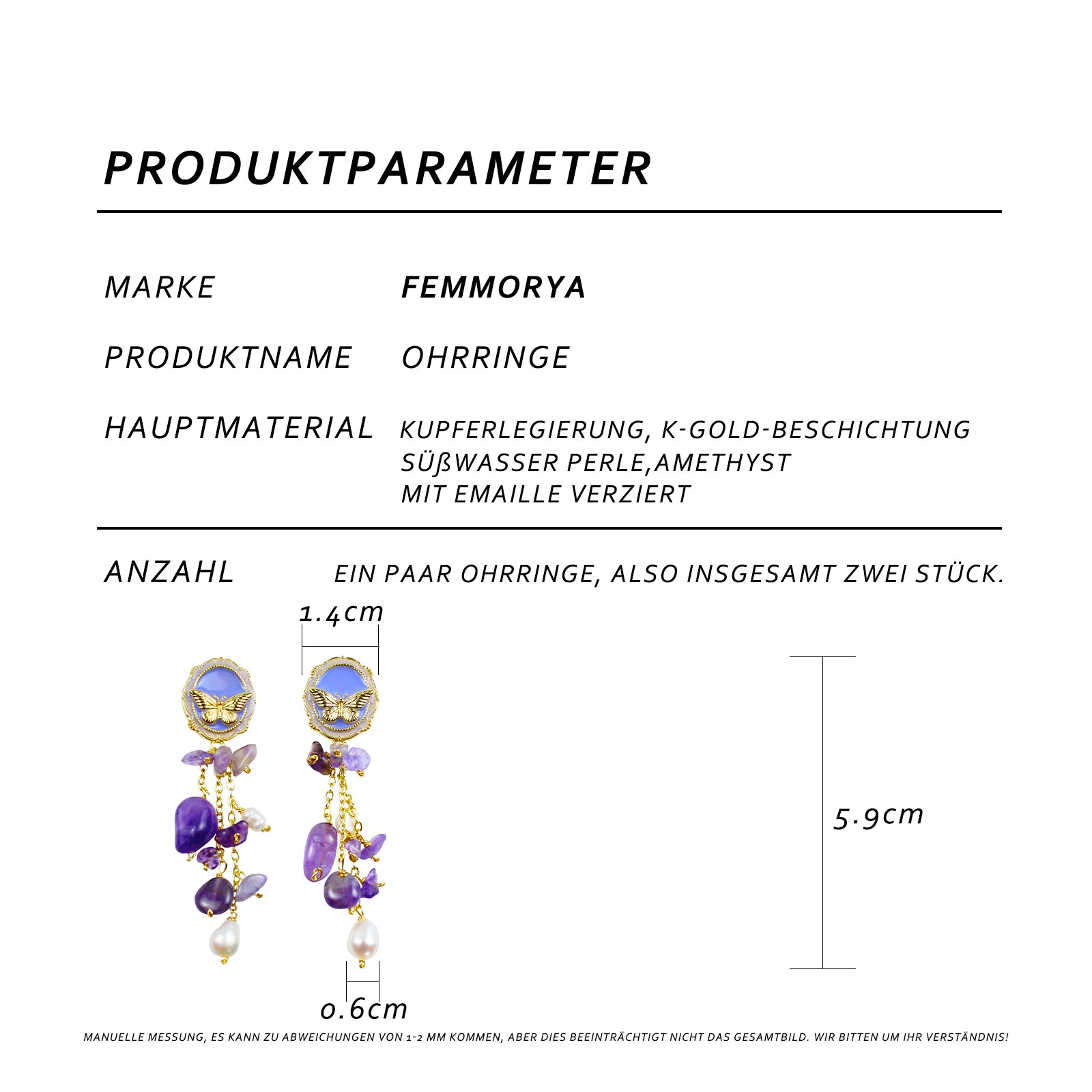 Amethyst Perlenohrringe im Schmetterlingsdesign – 14K Vergoldet, Feine Kristalle & Süßwasserperlen, Eleganter Schmuck für Bälle und Anlässe