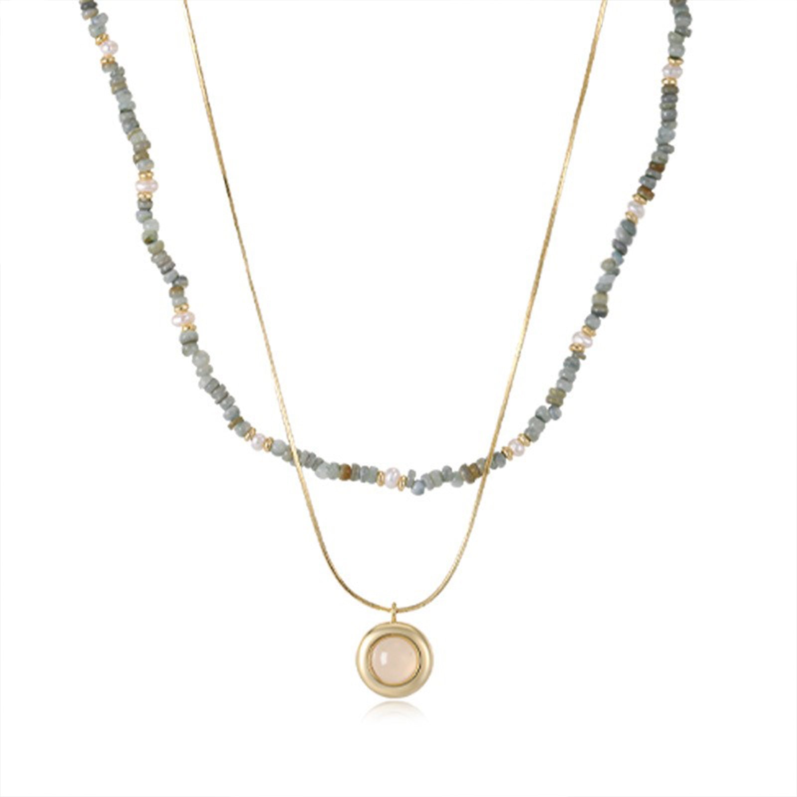 π High-Quality Materials β Crafted with aquamarine, freshwater pearls, and a gold-trimmed chalcedony pendant. The herringbone chain is meticulously designed for comfort and lasting style.