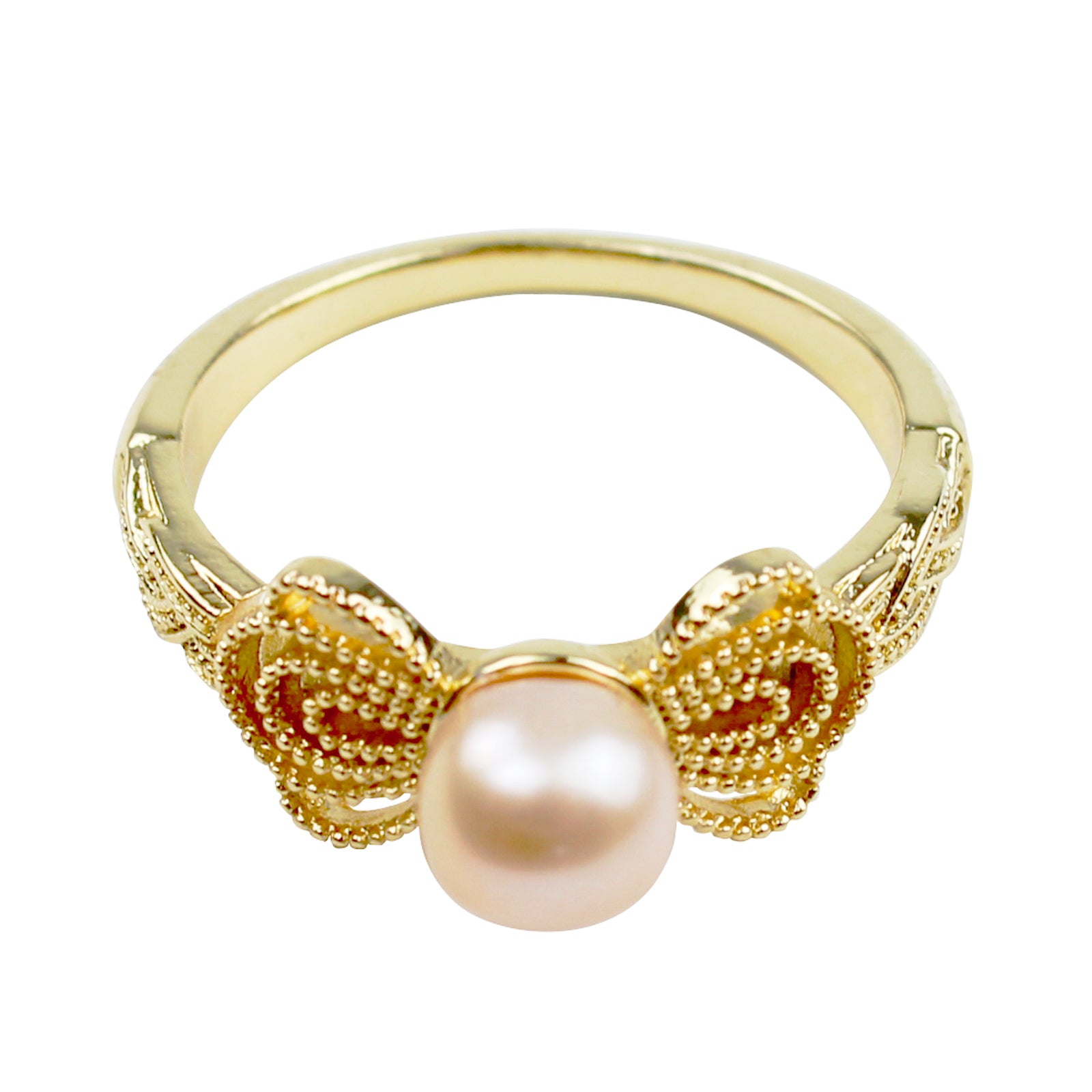 Chinesischer Schmetterlings Perlenring – Offener Verstellbarer Ring, 14K Vergoldet mit Süßwasserperle, Eleganter Damenring