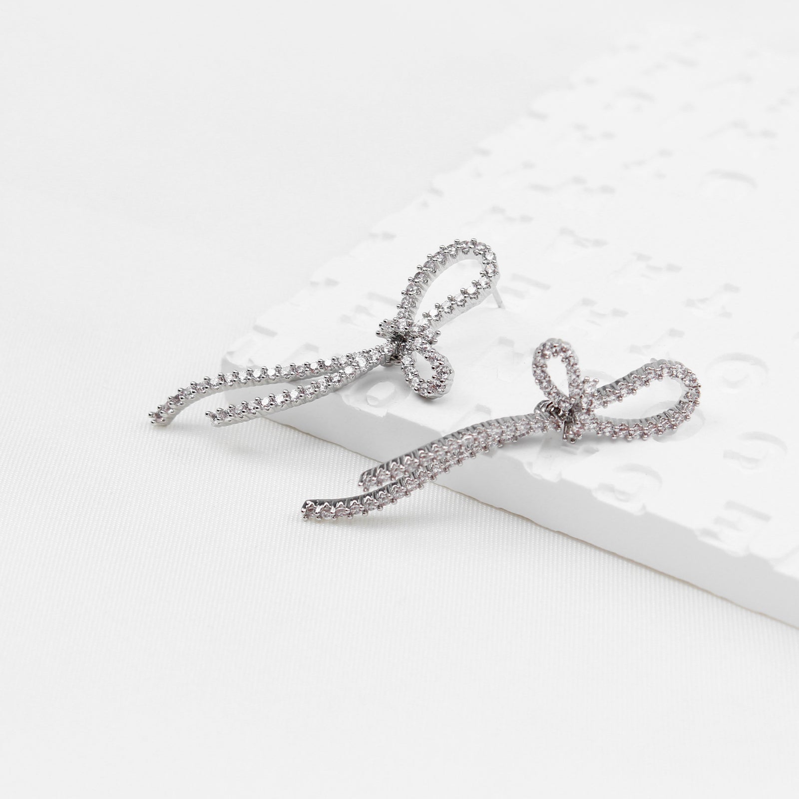Elegant Bow Zirconia Stud Earrings – Sparkling Earrings for Women, Ideal for Everyday & Special Occasions