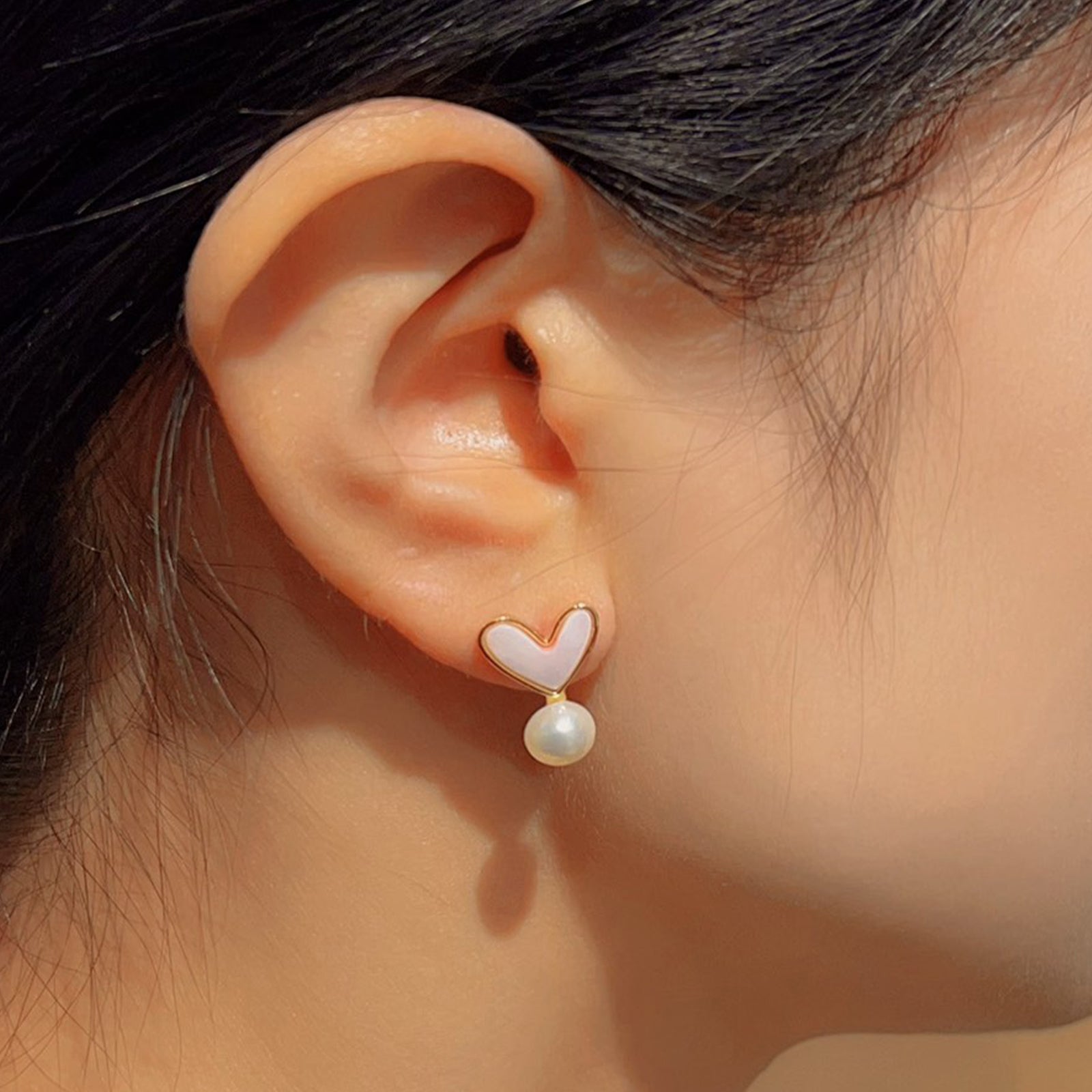 Ein kleines Herz, das wie ein stilles Geständnis wirkt – die „Erste Liebe“ Perlenohrringe verkörpern die süße Nervosität und Wärme des ersten Verliebtseins. Das zart handgemalte Herz in sanftem Rosa strahlt jugendliche Frische aus, während die schimmernde Süßwasserperle darunter für einen Hauch Eleganz sorgt. Gefertigt aus 14K vergoldeter Kupferlegierung, leicht und angenehm zu tragen – perfekt für School Girl Looks, romantische Dates oder einfach um dem Alltag einen Hauch von Liebe zu geben. Mit jeder Bewegung schwingt ein wenig Herzklopfen mit – ideal als kleines Liebesgeschenk an dich selbst oder jemanden, der deine „erste Liebe“-Momente verdient. 💌🎀