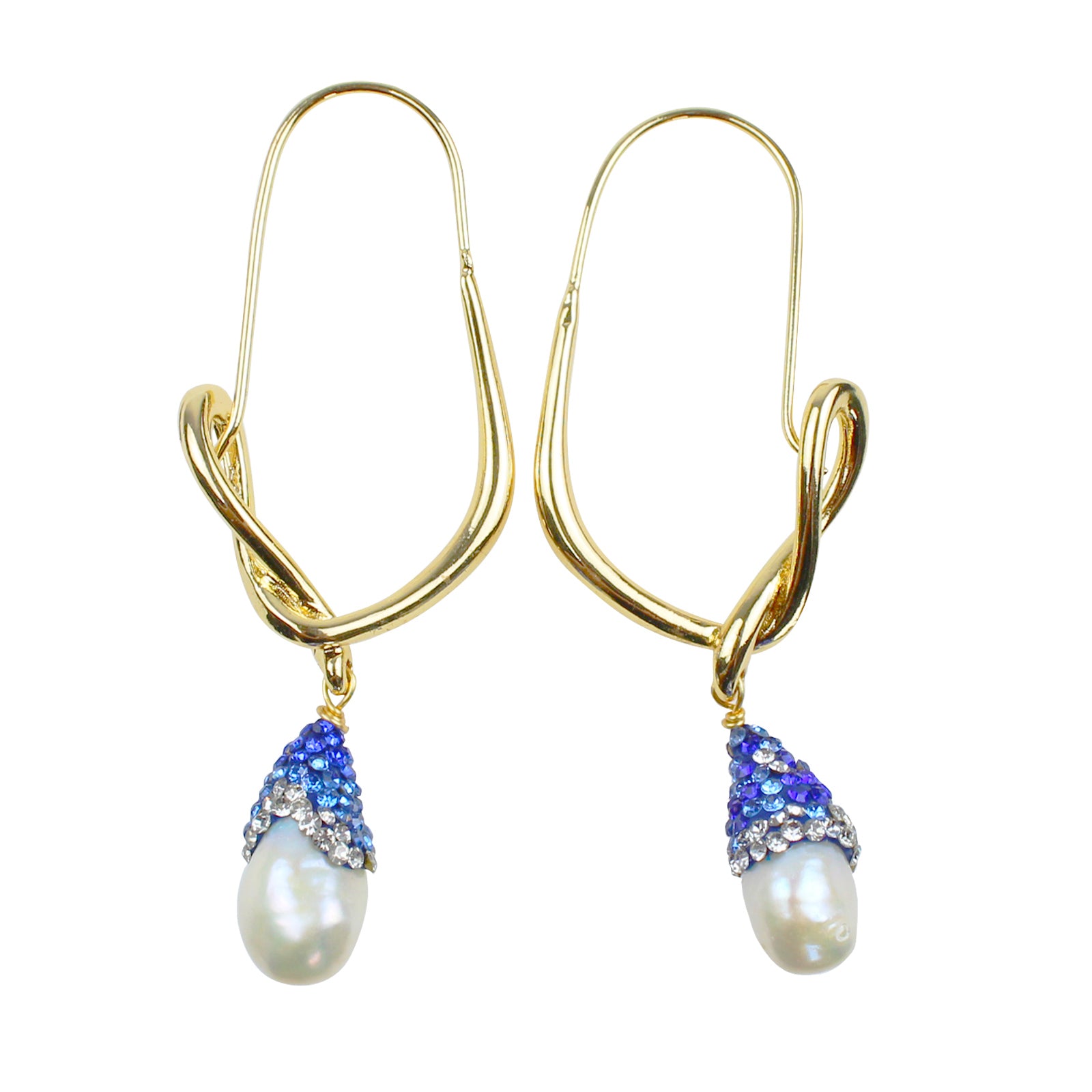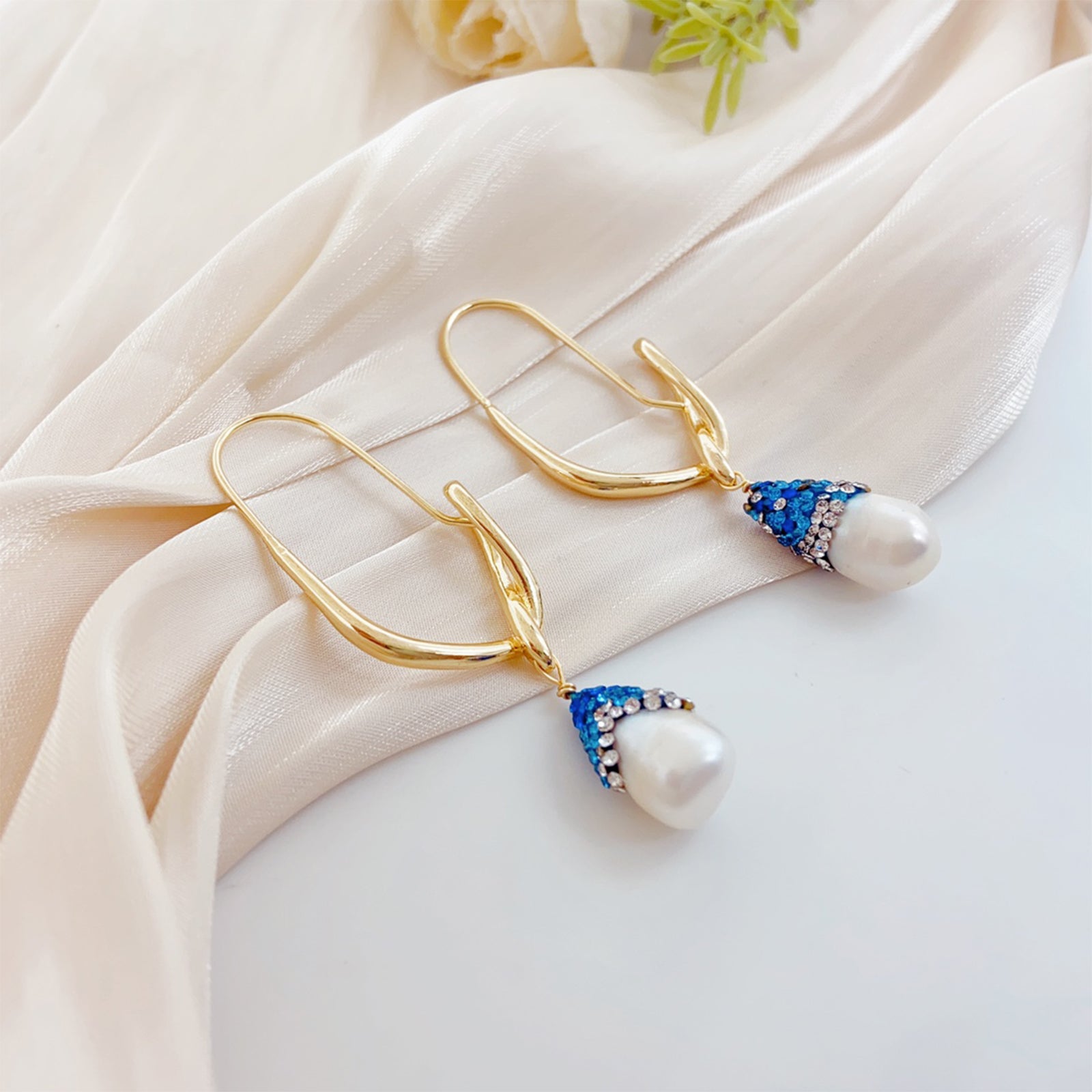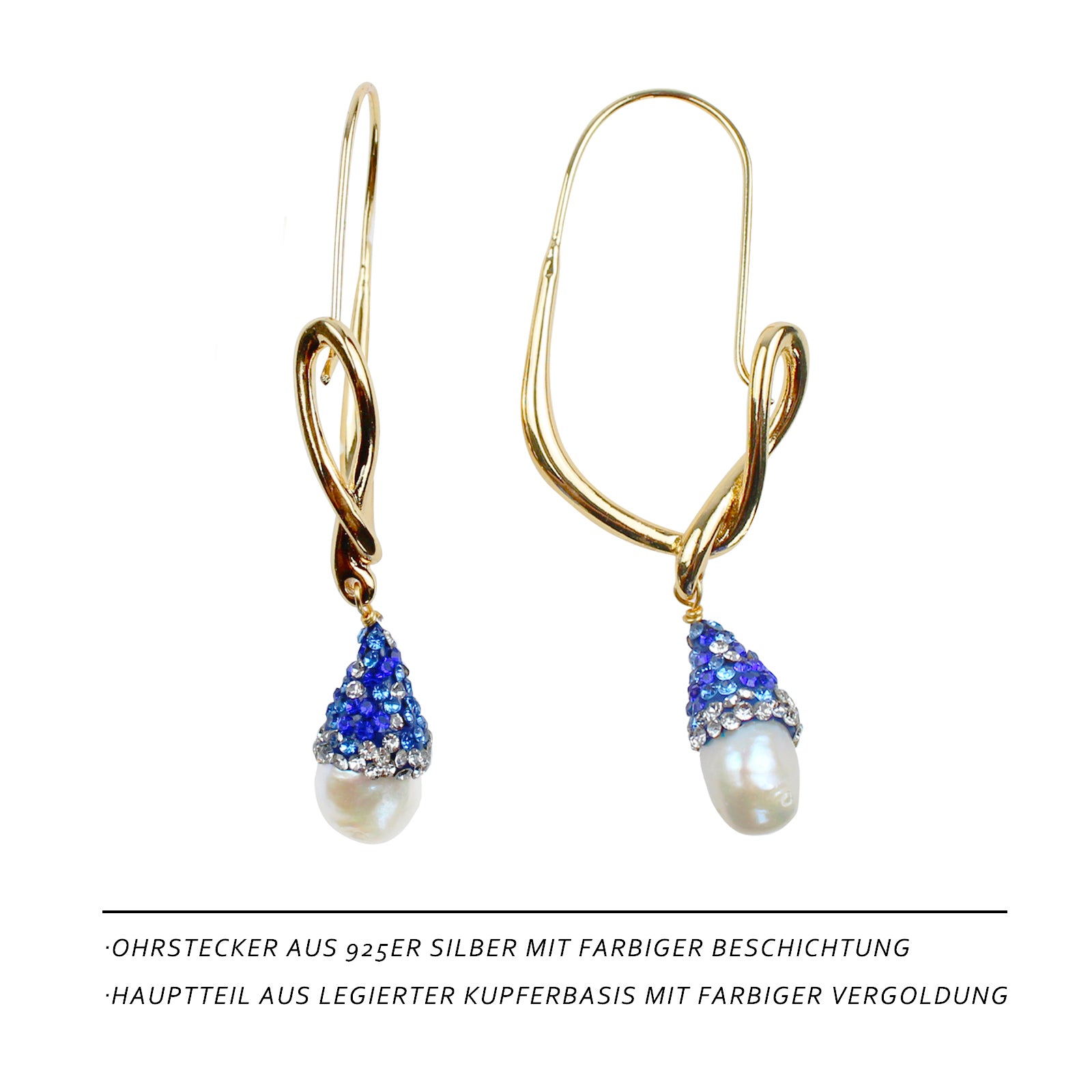 Fischhaken-Perlenohrringe – 14K Vergoldet, Blaue Süßwasserperle & 925 Silberstift, Künstlerisches Design für Damen