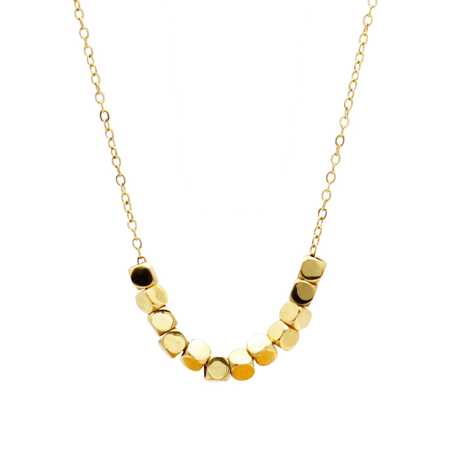 ✨ Modern & Minimalist – This gold-plated titanium steel necklace features 12 small geometric cubes, arranged in a sleek, minimalist design. The delicate gold chain perfectly showcases the cubes, adding a modern and elegant touch to your outfit.