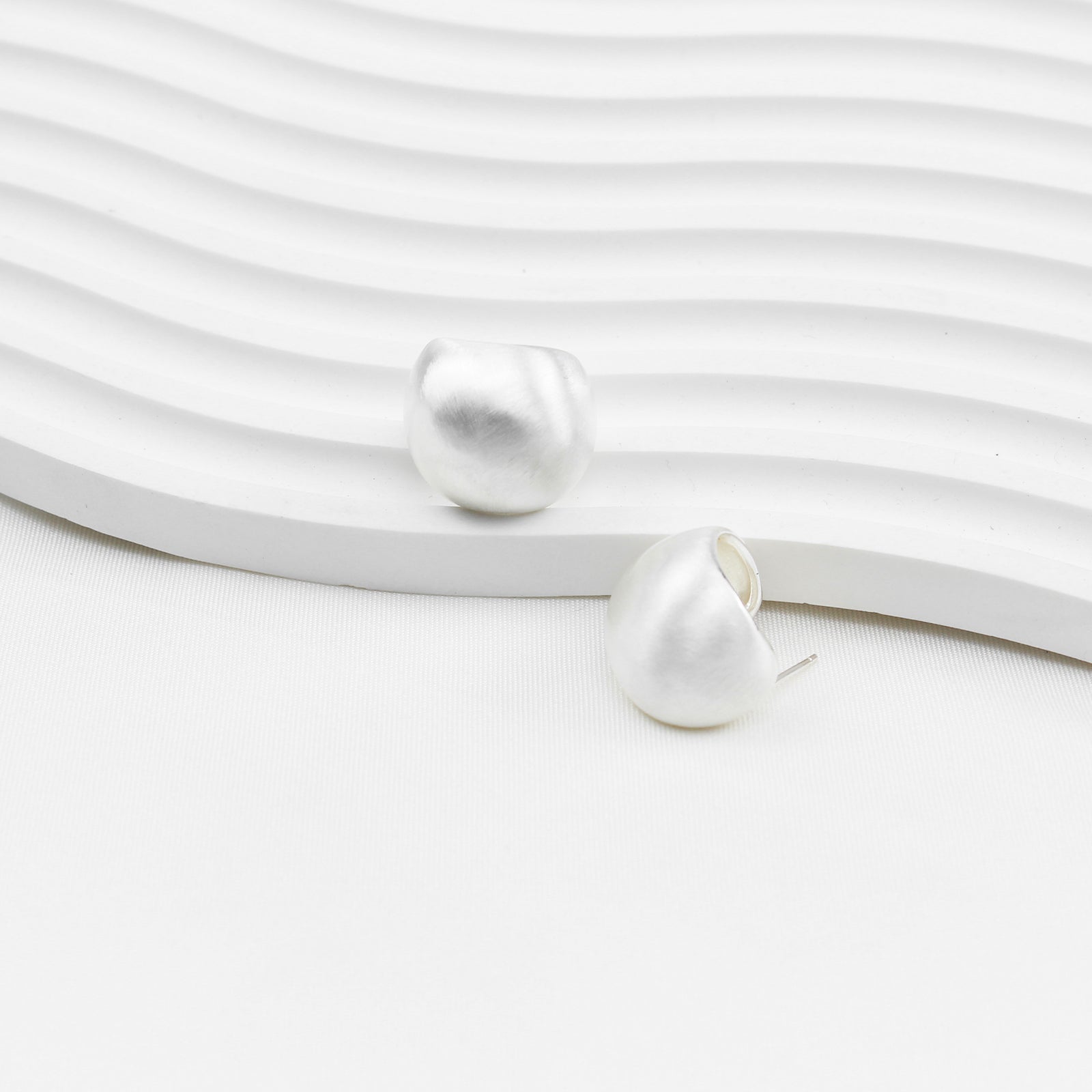 Matte Silver Bean-Shaped Stud Earrings for Women – Elegant Metal Earrings, Ideal for Office, Everyday & Parties