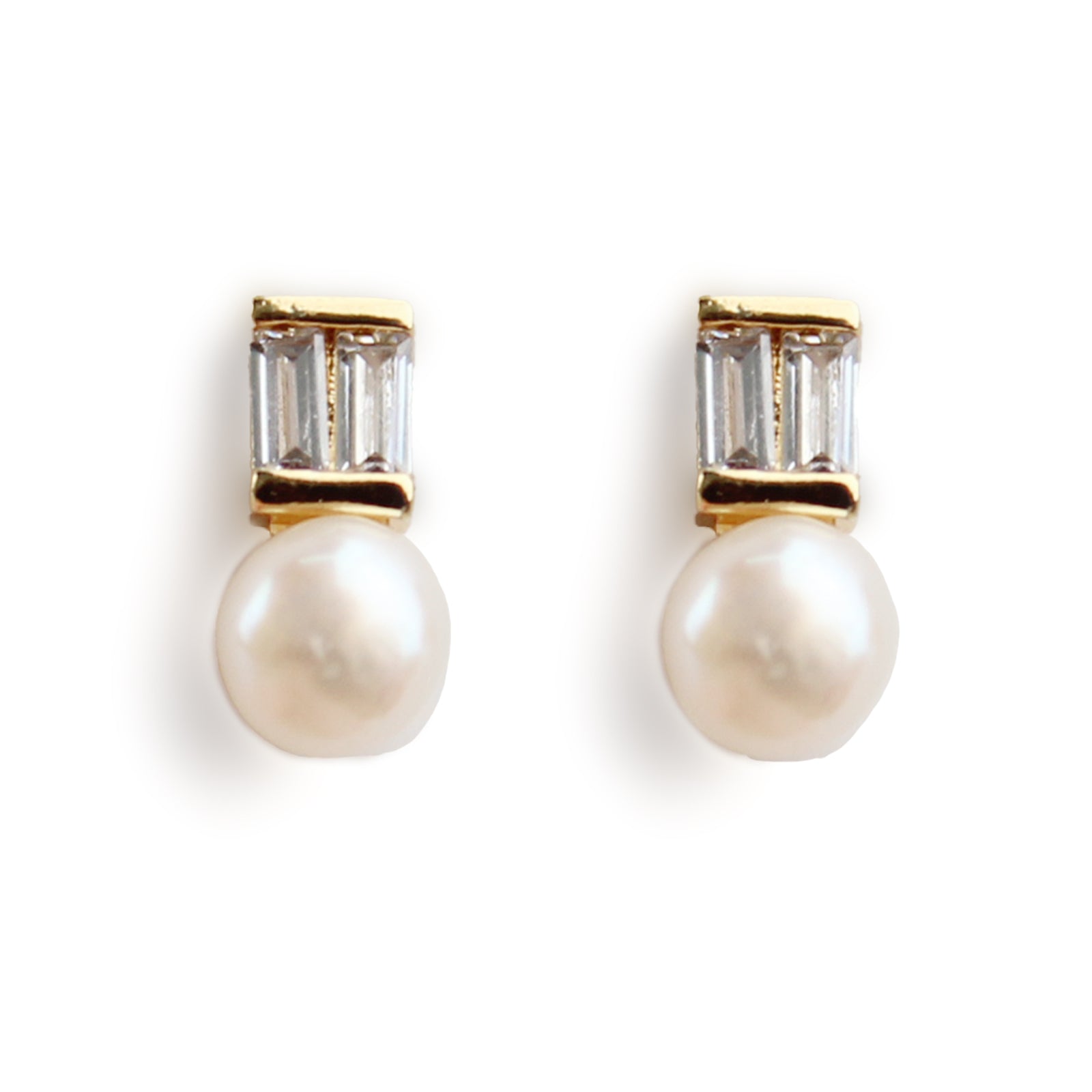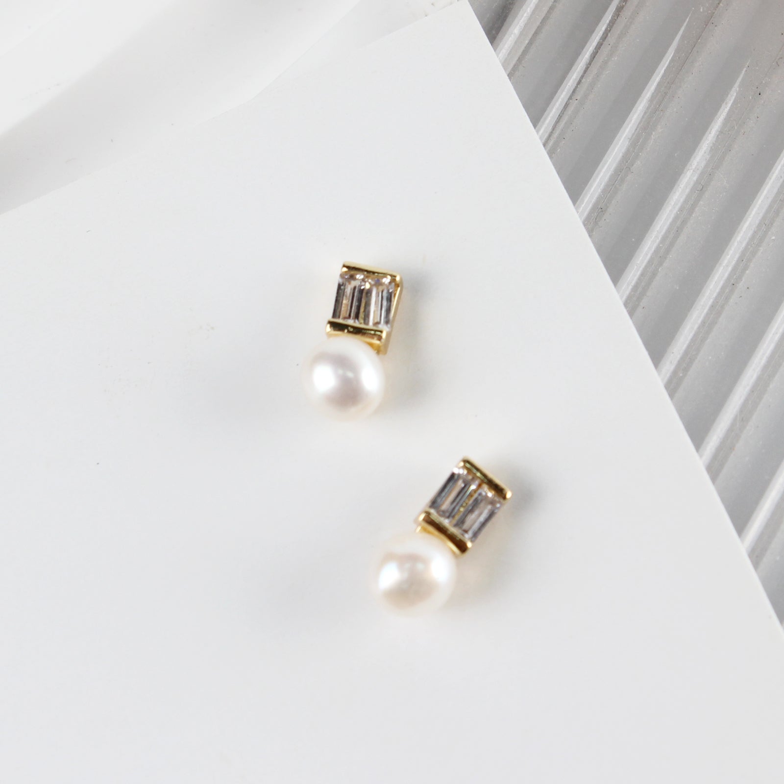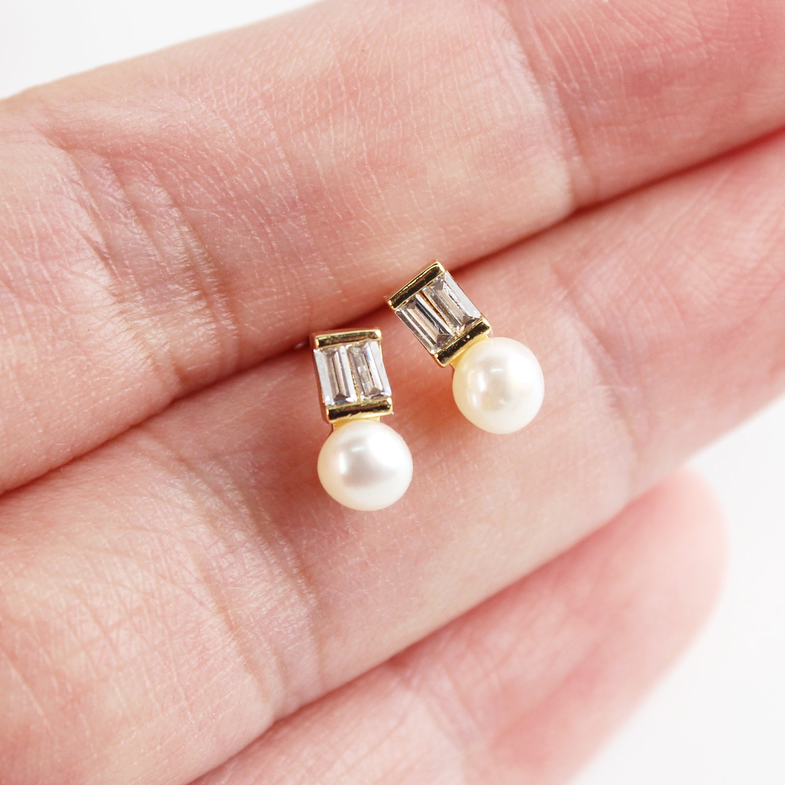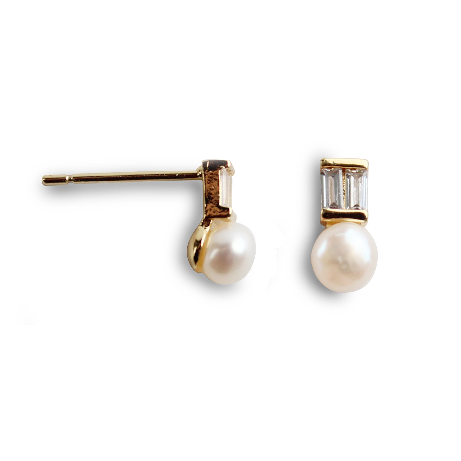 Minimalist Zircon & Pearl Stud Earrings – 14K Gold Plated with 925 Silver Posts for Women 💎