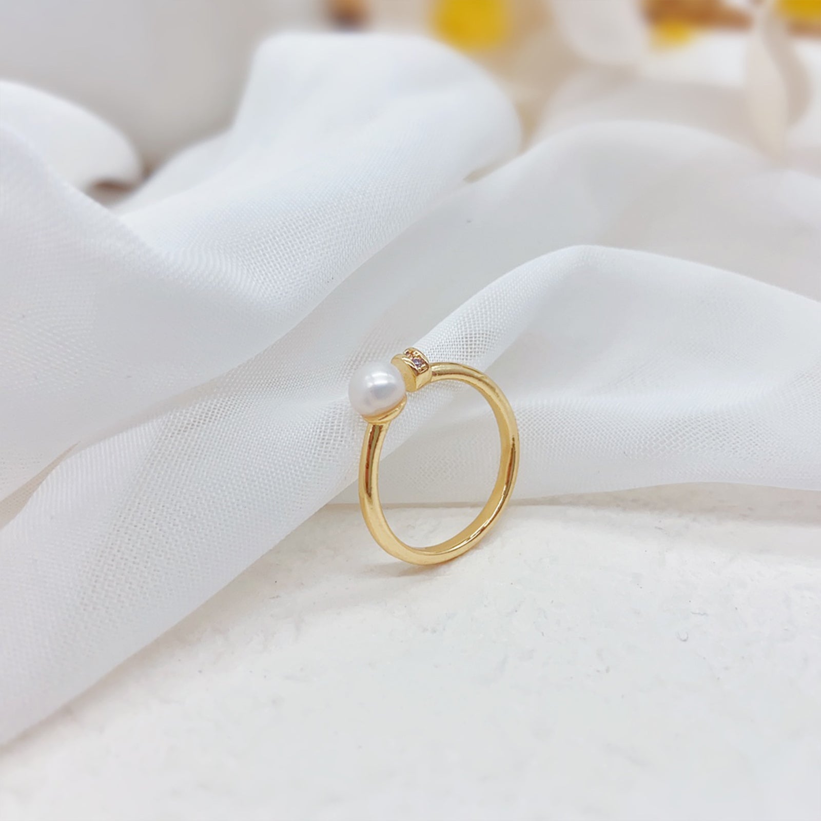 Minimalistischer Perlenring – Einstellbar, Süßwasserperle, 14K Vergoldet, Eleganter & Verstellbarer Schmuck für Damen