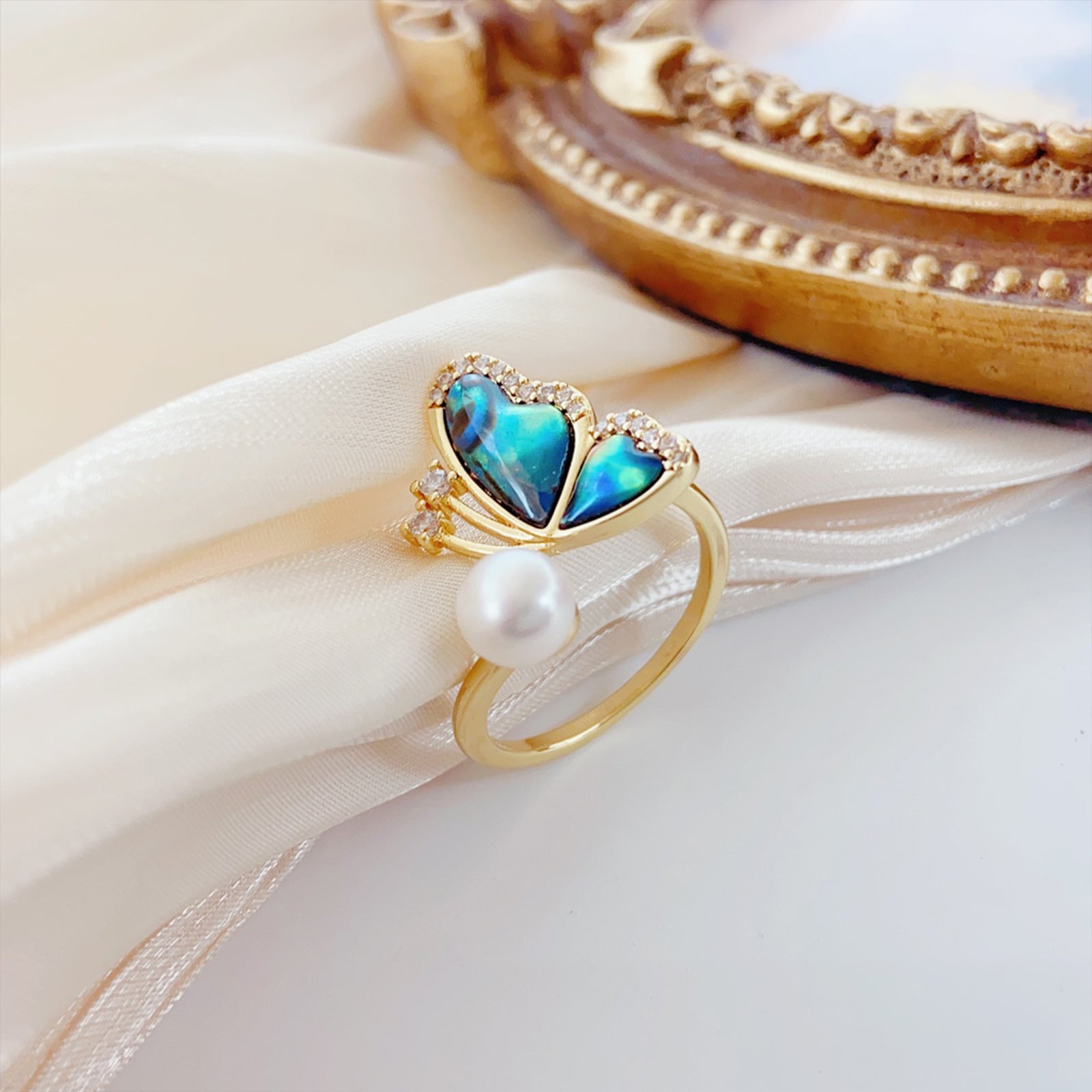 🦋 Nature’s Whisper — The Butterfly Pearl Ring captures the gentle grace of nature with a shimmering green abalone butterfly resting delicately on a white freshwater pearl. The contrast of iridescent green and soft pearl white creates a dreamy, feminine glow that feels effortlessly elegant.