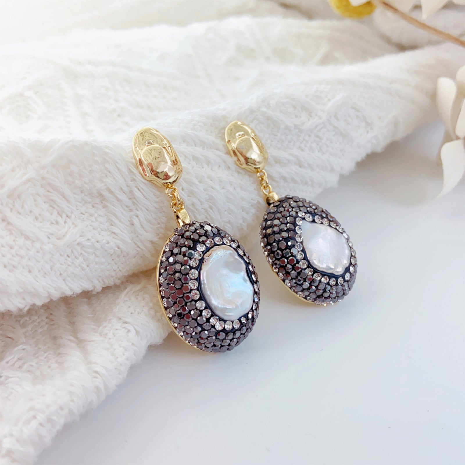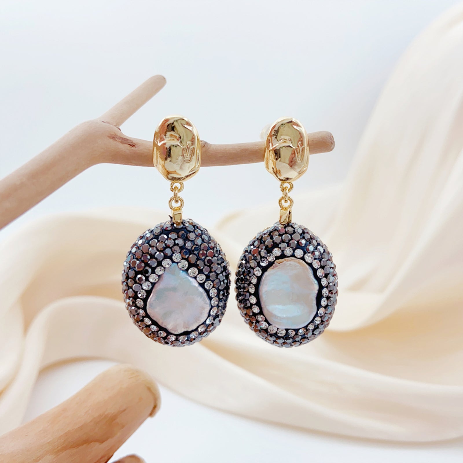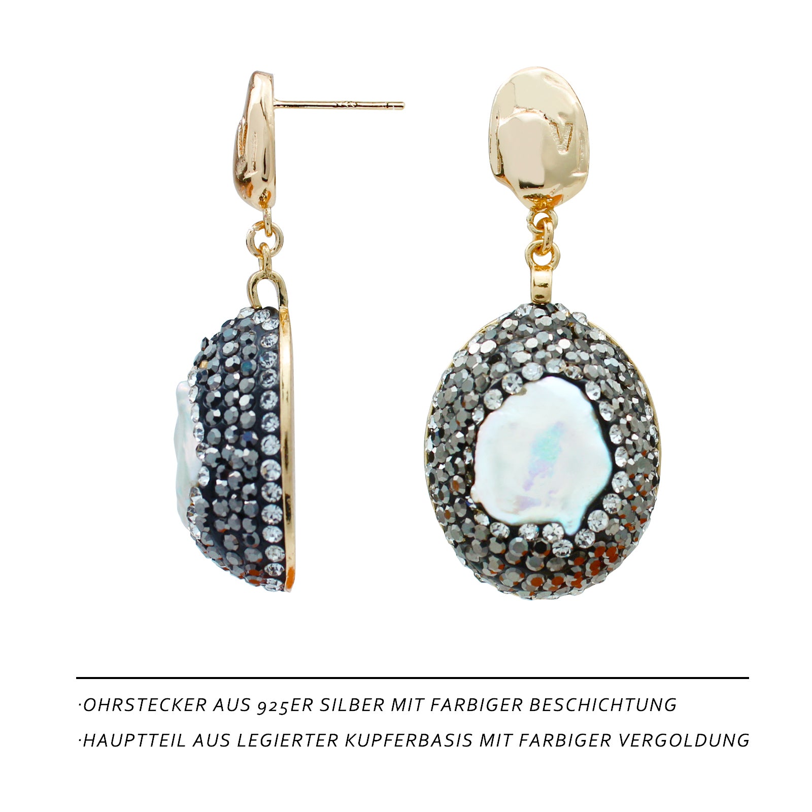 Ein Hauch von Nacht, ein Glanz wie Sterne – diese schwarzen Zirkon Perlen Ohrstecker vereinen geheimnisvolle Tiefe mit edler Eleganz. ✨ In der Mitte schimmert eine unregelmäßige Barockperle aus Süßwasser, umrahmt von funkelnden schwarzen Zirkonsteinen, die an das Glitzern eines Nachthimmels erinnern.