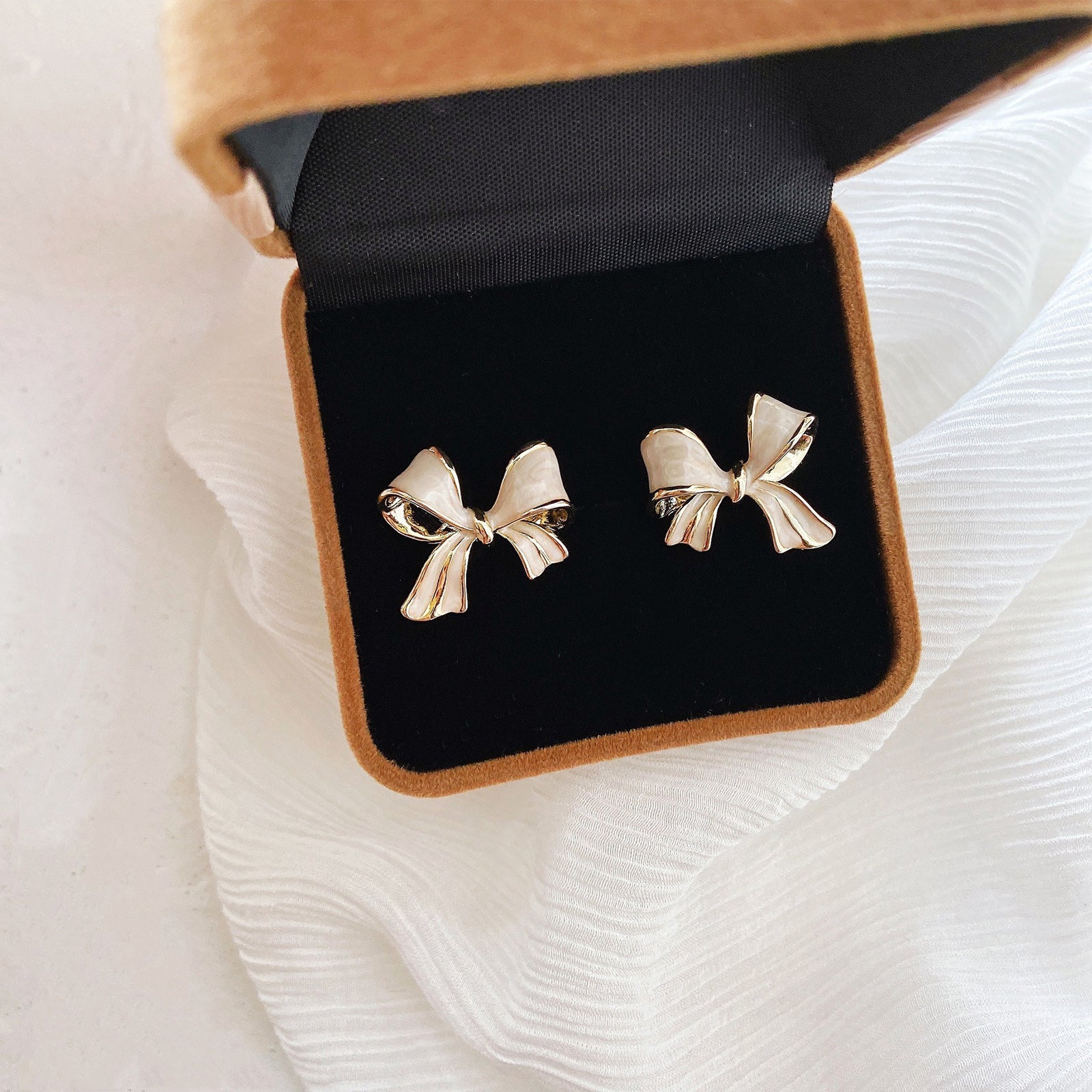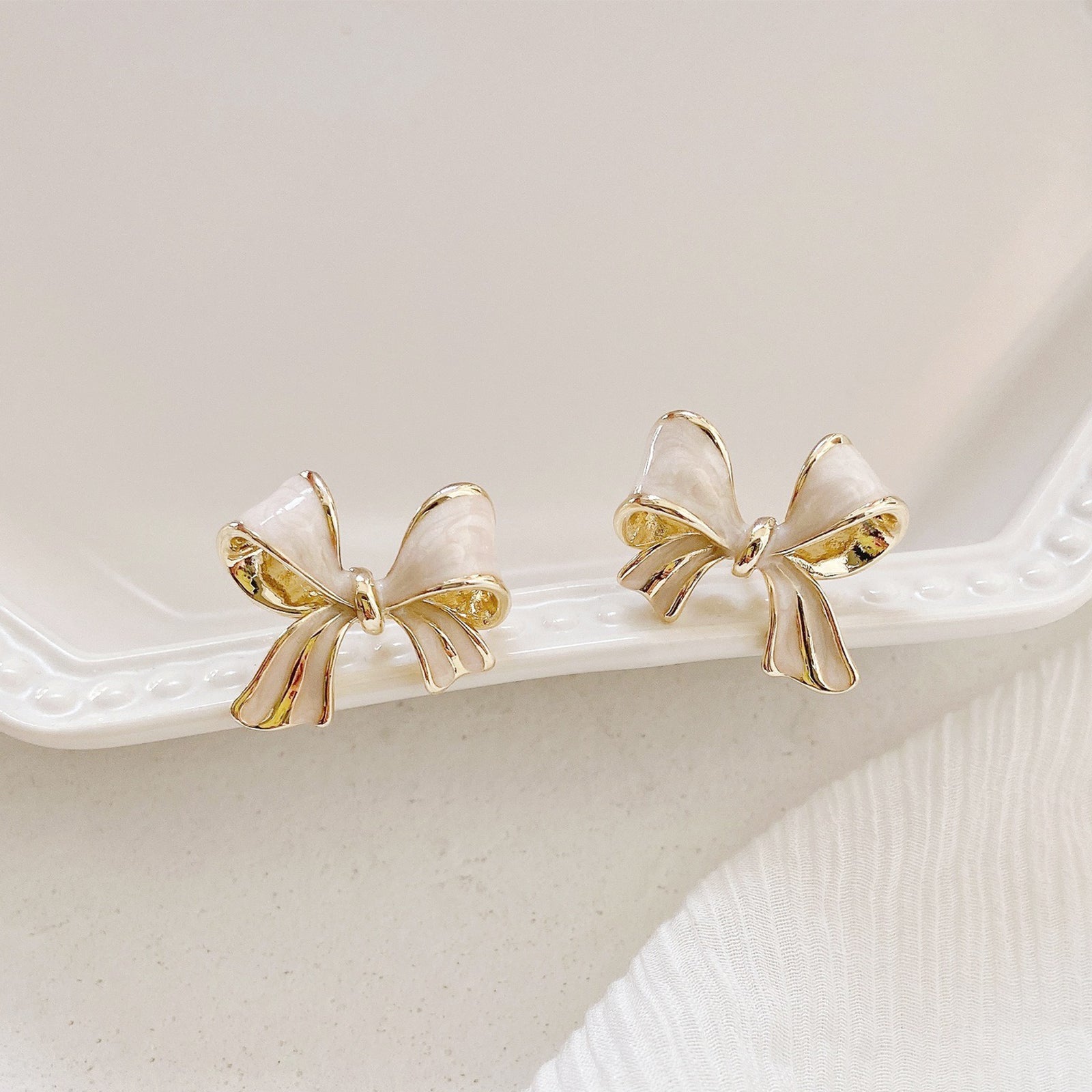 Vintage Bow Earrings in Cream White β 14K Gold Plating & Enamel, Elegant Jewelry for Women, Ideal for Lolita & Princess Look, Party & Everyday